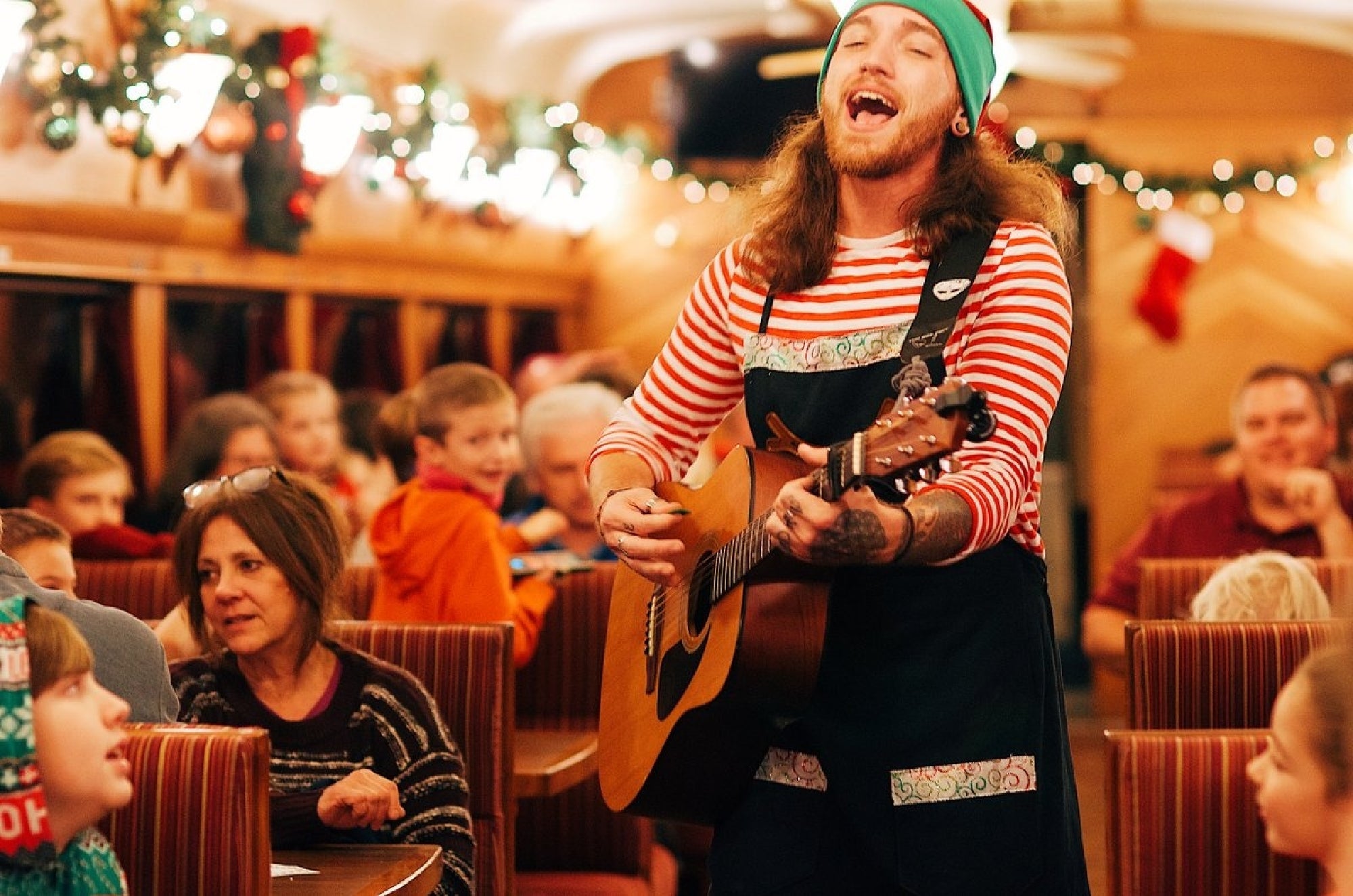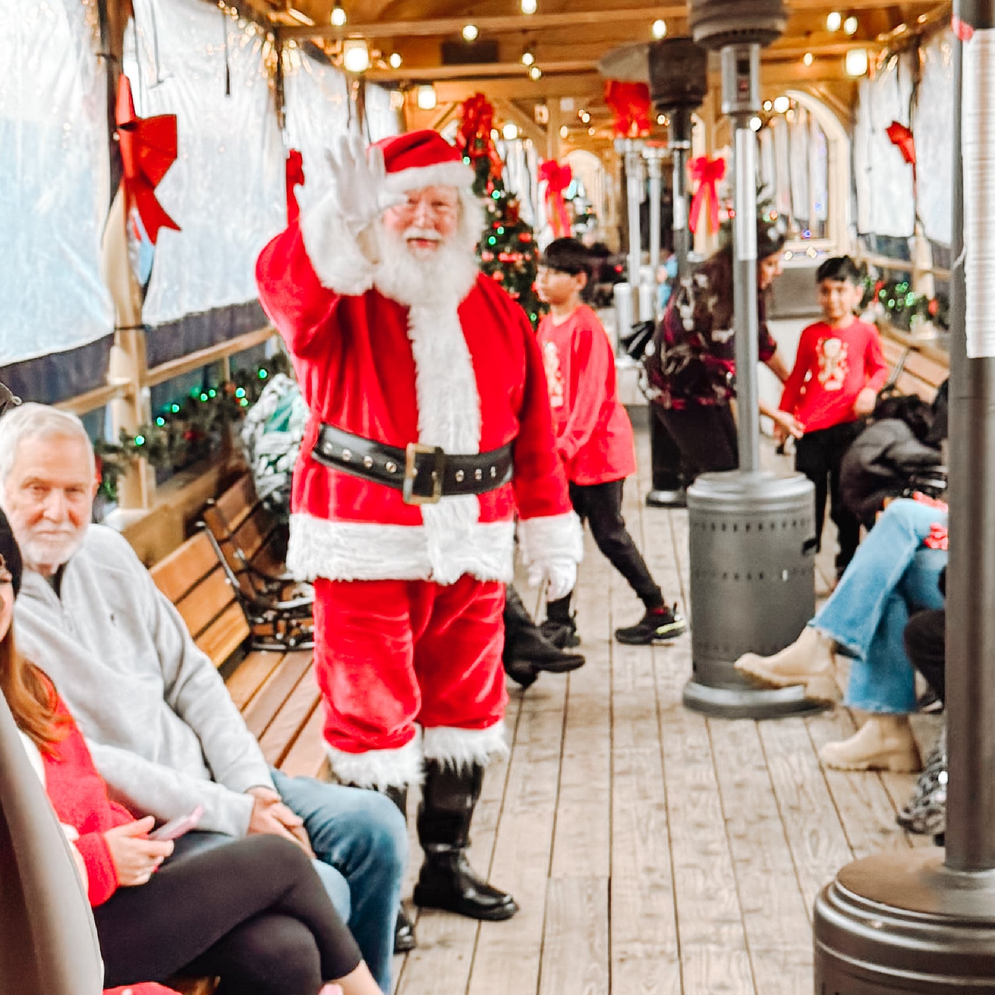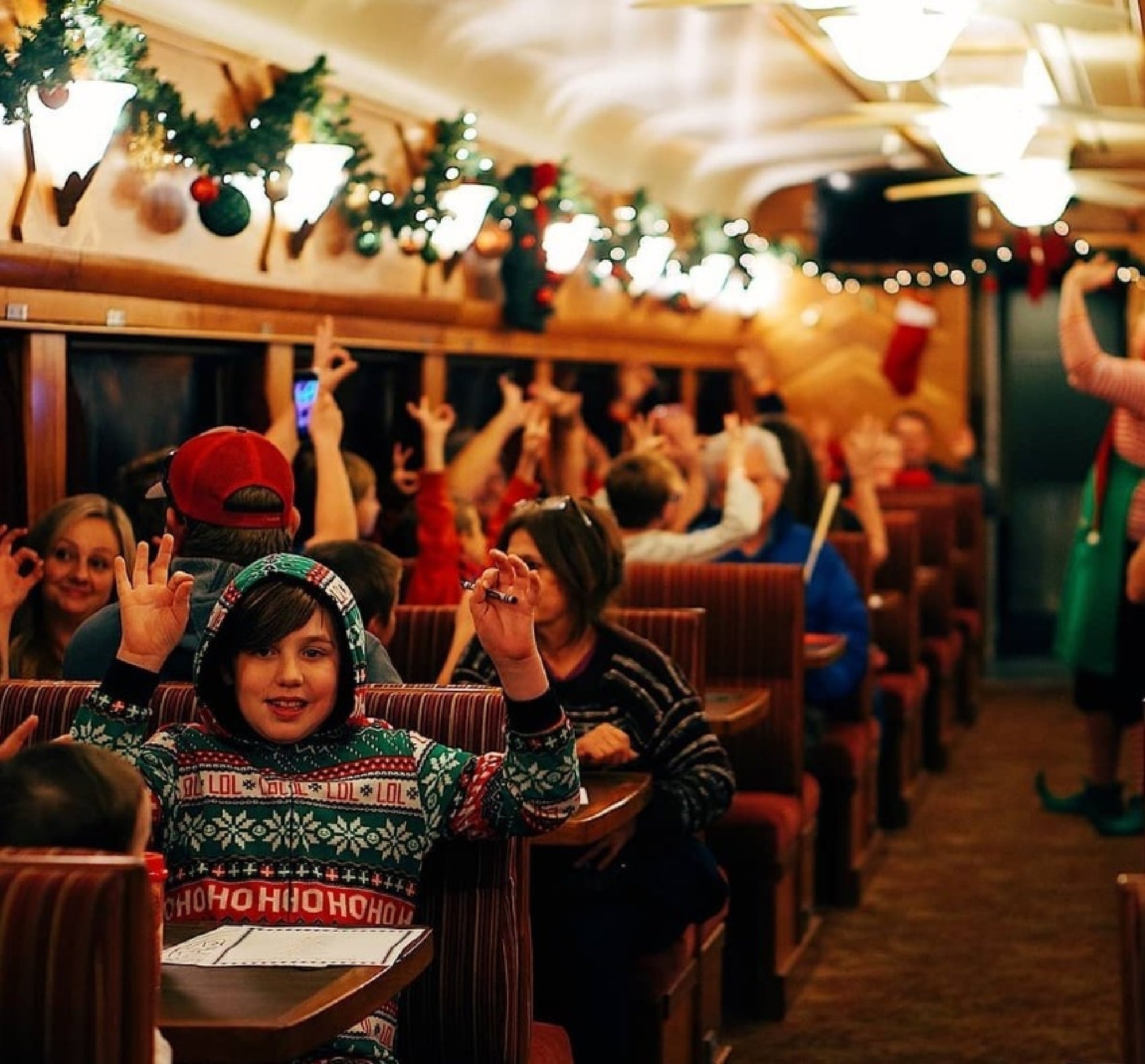 Wear comfortable, casual clothing, or dress in your cozy PJs to add even more magic to your holiday experience. Flats or chunky heels are also recommended as there are multiple gravel walkways and moving rail cars.
